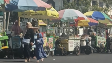 Para pedagang kaki lima (PKL) kembali berjualan di kawasan Alun-alun Tuban pada Sabtu (11/10/2025). Sebelumnya, area Alun-alun telah disterilkan dari…
