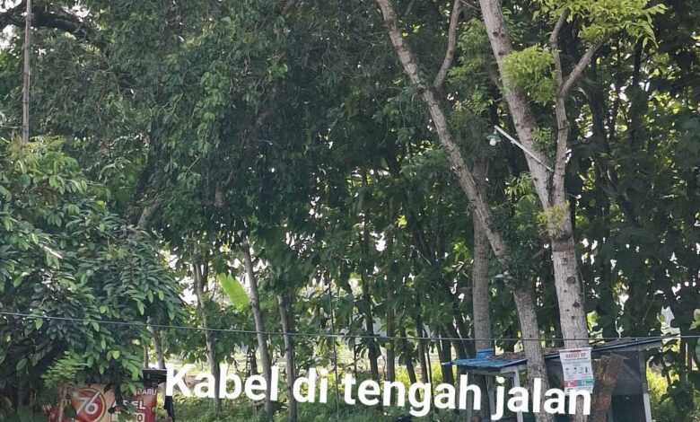 Warga Jatirogo hati hati ya, ada kabel WiFi terlihat melintang dan menjuntai rendah di tengah jalan wilayah Karang Asem, Kecamatan Jatirogo.