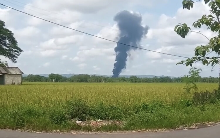 KEBAKARAN TEMPAT PENYULINGAN MIGAS DI SENORI, ASAP TERLIHAT SAMPAI BANGILAN
