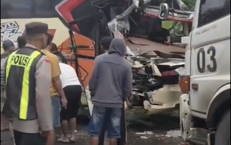 KECELAKAAN BUS BERLIAN JAYA VS TRUK CLEO DI SINGGAHAN