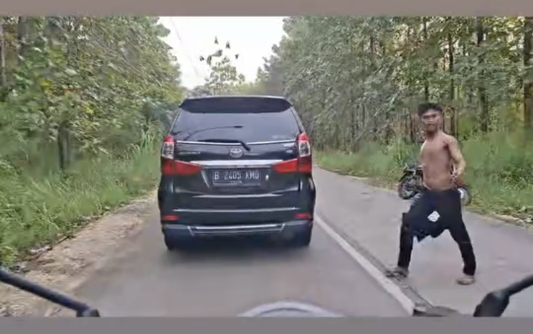 Seorang pria tak dikenal mengganggu pengguna jalan di Desa Banyuurip, Kecamatan Senori, pada Minggu (22/3/2026) sore.