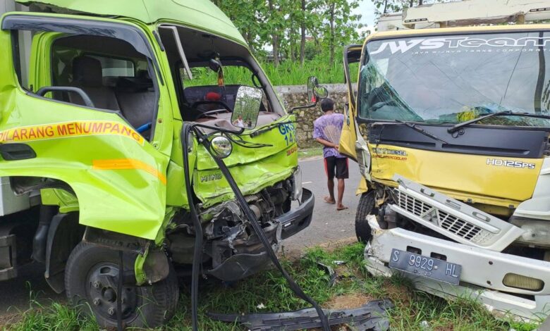 Kecelakaan dua truk terjadi di Jalan Ring Road Tuban, tepatnya wilayah Desa Prunggahan Kulon, Kamis (6/11/2025).