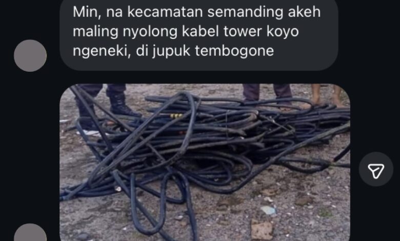 Laporan netizen Info Tuban: pencurian kabel tower makin marak dalam sebulan terakhir.
