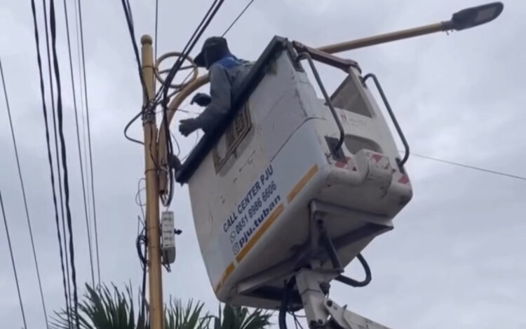 PJU TUBAN MULAI POTONGI KABEL INTERNET YANG NUMPANG DI TIANG LAMPU JALAN