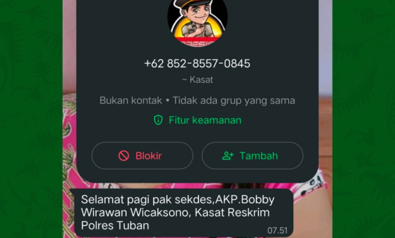 WASPADA! NAMA KASAT RESKRIM POLRES TUBAN DIPAKAI MODUS PENIPUAN MINTA UANG KE WARGA